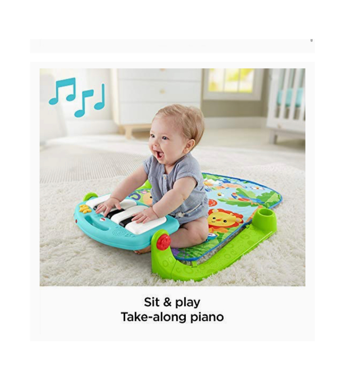 - Fisher-Price Kick & Play Piano Baby Gym has 4 ways to play as baby grows from laying and playing to Tummy time, sitting and playing, and Take-along