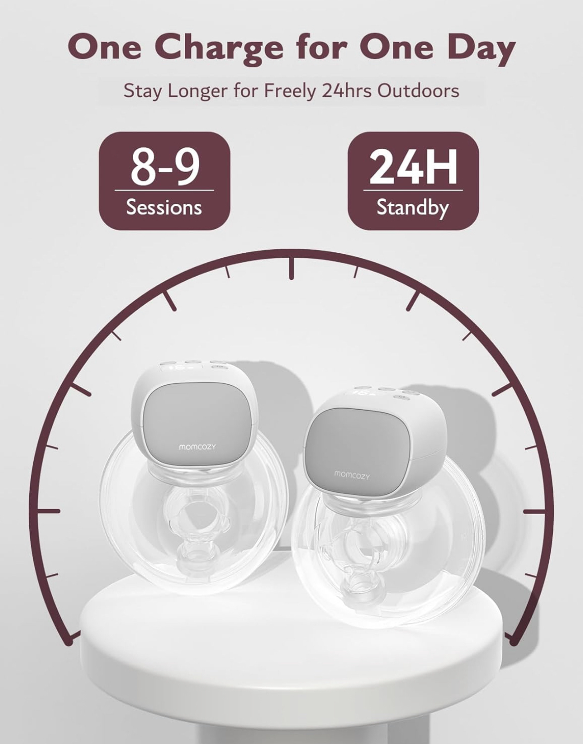 - Longer Battery Life, Move Freely – one day charge for a whole day outdoors. Fully charged can be used for 270min/8-9 sessions. The auto shut-off every 30 minutes helps moms pump on comfortably. Higher capacity battery and faster Type-C charging.