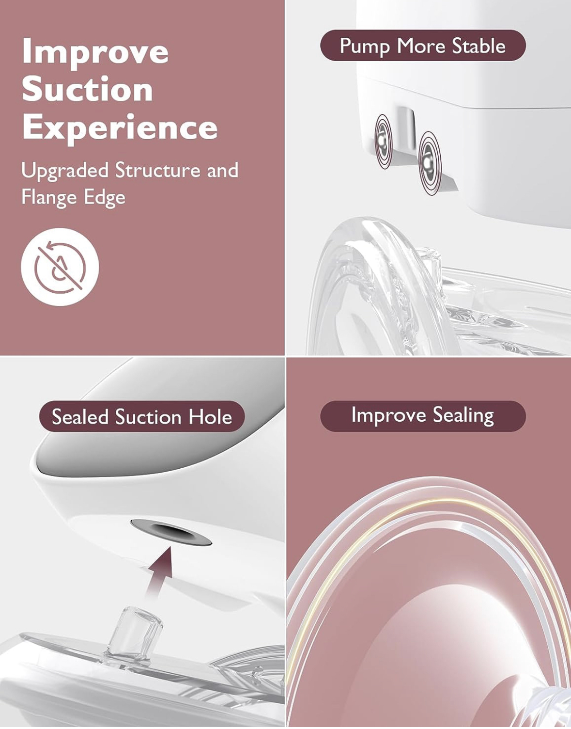 - Innovative Pumping Technology – With a more stable installation and increased flange sealing edge for no leaks, the S9 Pro hands free breast pump sucks up every drop of breast milk. The fittings are soft food-grade silicone, are easy to remove for cleaning, and remain well sealed for optimal suction. The built-in bra adjustment buckle helps improve the pump effectiveness of the wearable breast pump.